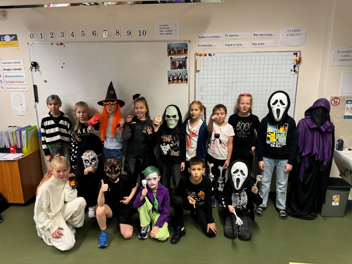 Kā arī organizējām kostīmu parādi, kur šogad uzvarēja 7.b klases skolnieks Zombija tērpā.