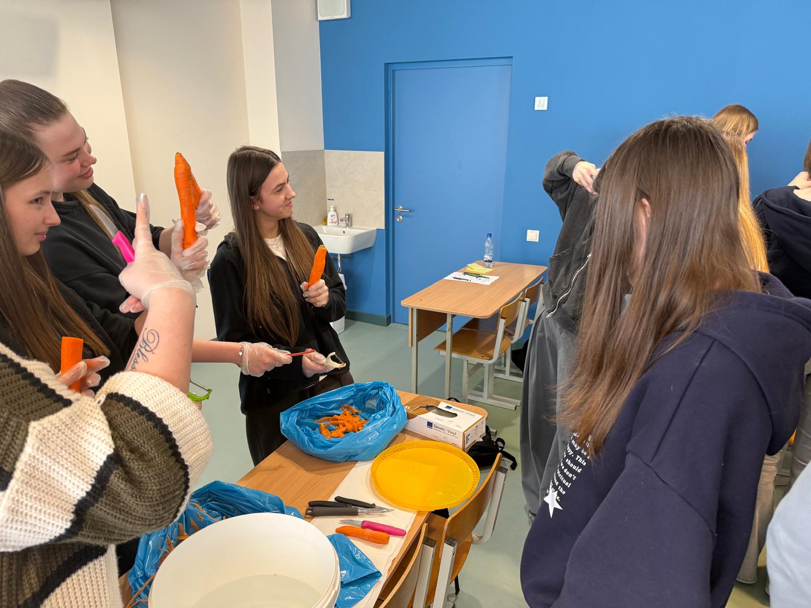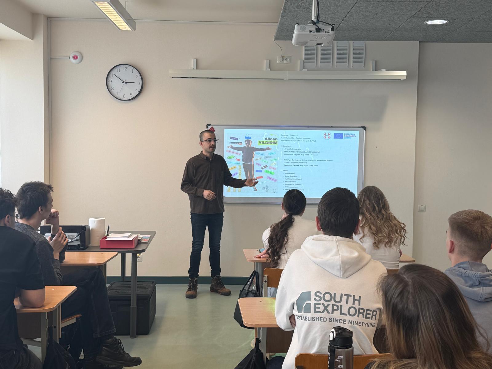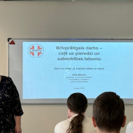 26.martā 11.klasēm notika nodarbība pilsoniskās līdzdalības jomā “Brīvprātīgais darbs – ceļš uz pieredzi un sabiedrības labumu”. Pie skolēniem viesojās biedrības “Latvijas pirmās palīdzības vienība” vadītāja Inita Bišofa, cilvēks, kas deg par brīvprātīgo darbu, un trīs ārzemju jaunieši, kuri šogad Liepājā ir brīvprātīgajā darbā. Inita pastāstīja jauniešiem par savu biedrību, kura jau darbojas 25 gadus. Aicināja jauniešus būt pilsoniski aktīviem, klausīt tos, kuri iedrošina darīt un aicina mēģināt darboties. Ārzemju jaunieši pastāstīja par savu pieredzi Liepājā. Brīvprātīgais darbs dod iespēju arī parādīt savus talantus. Kopā dejojām, vārījām kafiju, gatavojām produktus zupas virtuvei, gatavojām saldumus un ģenerējām idejas citam brīvprātīgajam darbam. Nodarbība notika ar ESF Plus projekta “STEM un pilsoniskās līdzdalības norises plašākai izglītības pieredzei un karjeras izvēlei” atbalstu.
