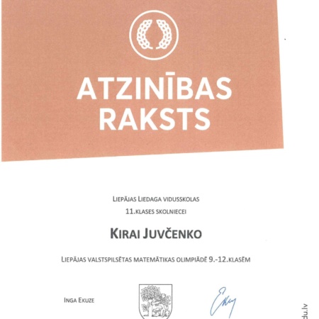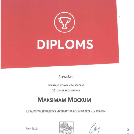 You are currently viewing Diplomi Liepājas pilsētas 📐matemātikas olimpiādei 9. – 12.klasei