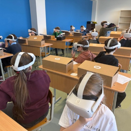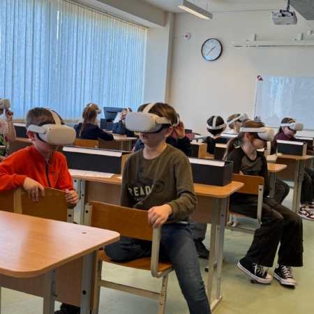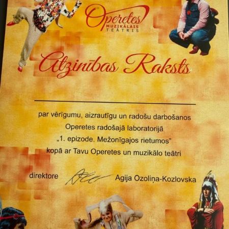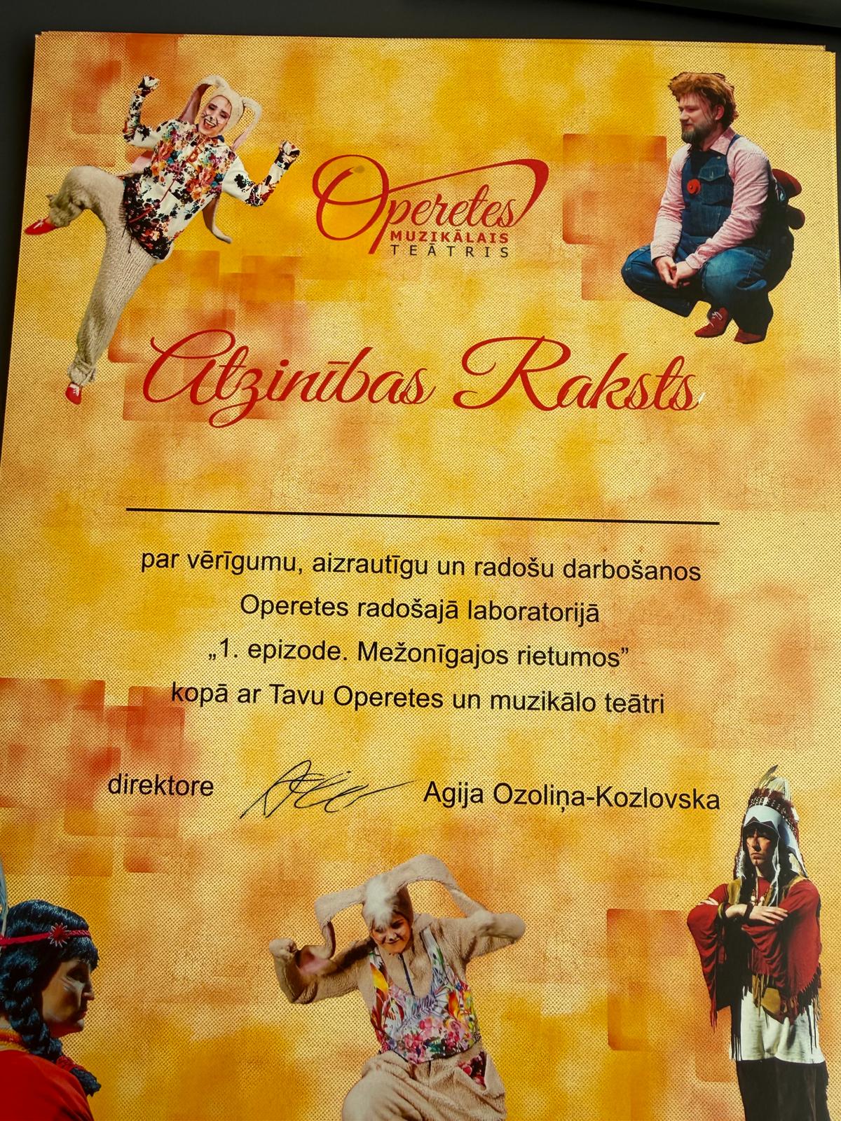 8.aprīlī pie 3. un 5. klases skolēniem viesojās Operetes teātris. Ar virtuālās realitātes 3D brillēm skolēni nokļuva uz VEF kultūras pils skatuves, zālē un aizkulisēs, piedzīvojot reālas klātbūtnes efektu kopā ar populārajiem bērnu mūziklu-operešu varoņiem Karlsonu, Pauku un Šmauku. Skolēni uzzināja, ar ko operete un muzikālā teātra žanri atšķiras no dramatiskā teātra, kas ir aktiermeistarība un ko var uzskatīt par īstu horeogrāfiju, kas ir scenogrāfija un kādēļ nepieciešami rekvizīti, kurā vietā teātrī atrodas parters, bet kur balkons, kas ir skatuves kulises un citus terminus. Atsevišķa epizode bija veltīta teātra grimam un kostīmiem.