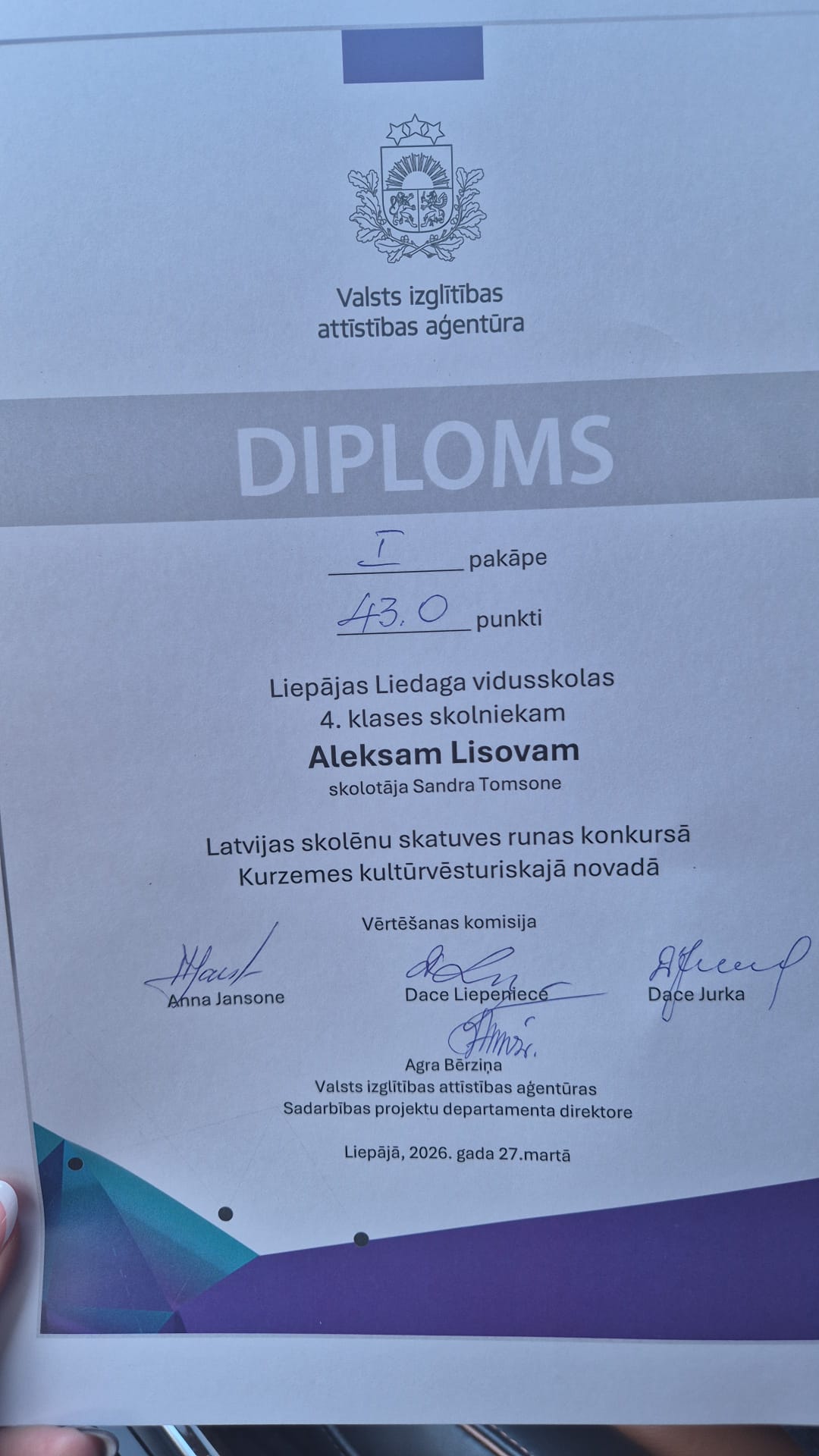 Panākumi Kurzemes reģiona skatuves runas konkursā 🦜“Zvirbulis 2026”